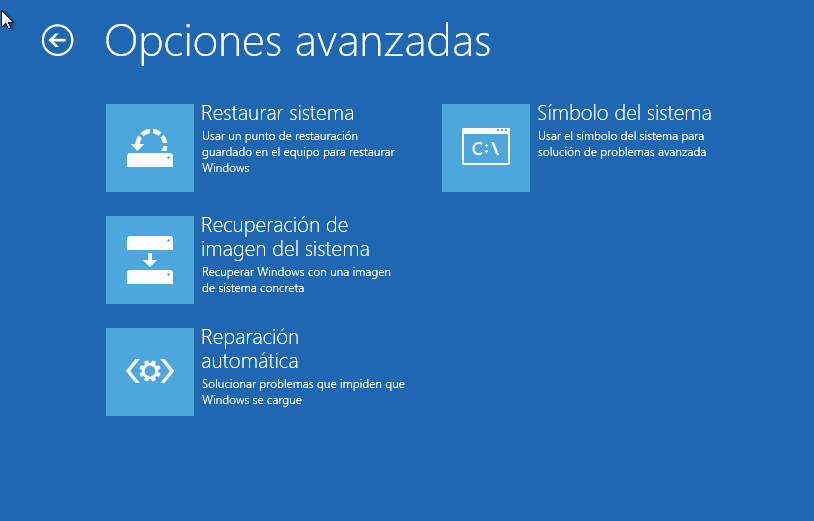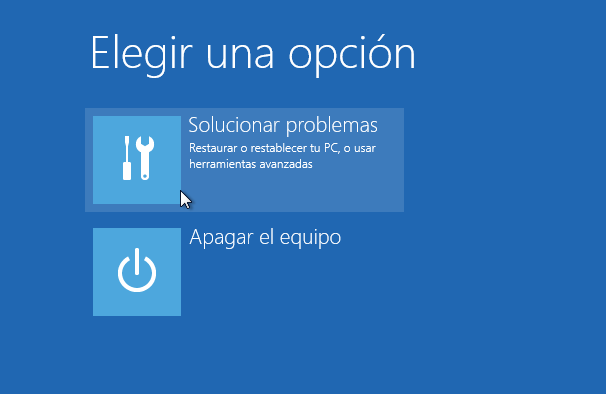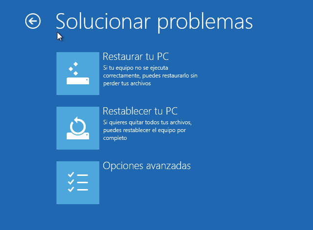 Os quiero mostrar que si queremos entrar en las opciones de reparar el equipo (no es el caso pues no tenemos una versión previa de Windows 8) podemos hacerlo en esta pantalla.