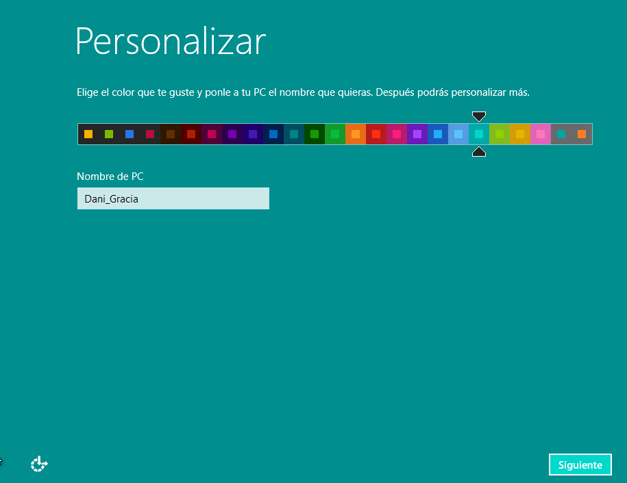 Entramos en la fase de configuración o personalización de nuestro Windows 8