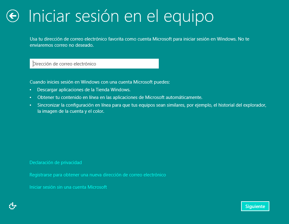 Como veis también podemos decir que no, e iniciar sesión sin una cuenta Microsoft.