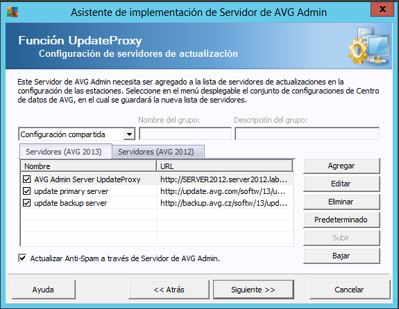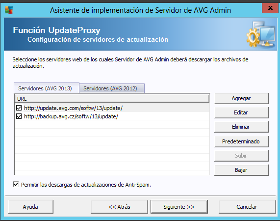 Instalaremos las dos opciones por defecto. De esta forma desde el servidor tendremos información sobre el estado de los equipos clientes. Además, los clientes descargaran los updates contra el servidor de AVG. Es igual que instalar un WSUS, pero de AVG. Así rebajamos la carga de la salida a internet.