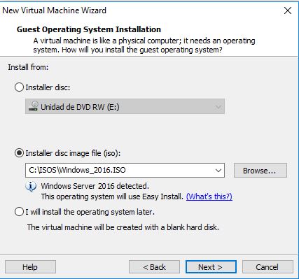 El tema es cuando instalamos por defecto una MV… en vez de seleccionar que instale la ISO directamente…