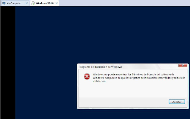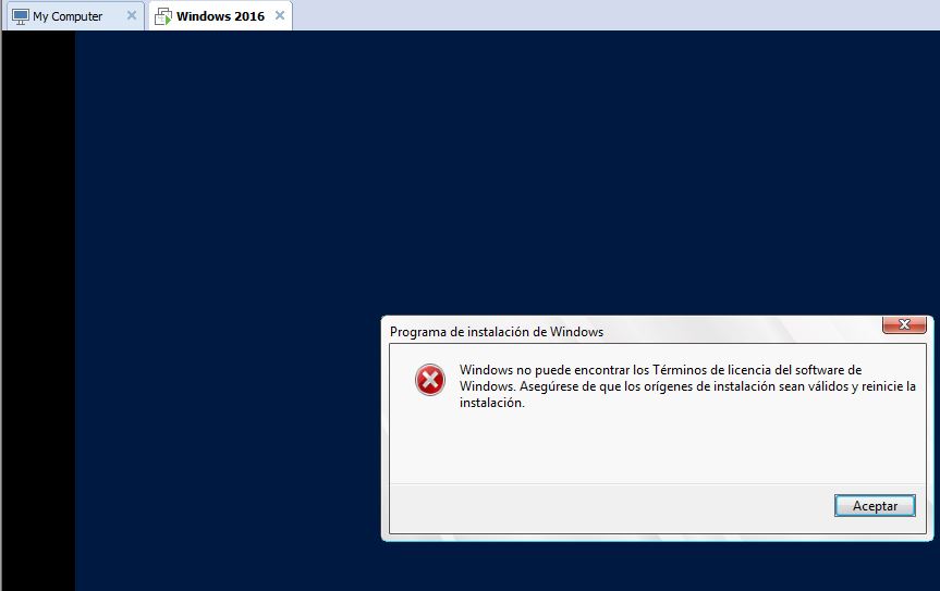 Vmware : Windows no puede encontrar los terminos de licencia del software de Windows