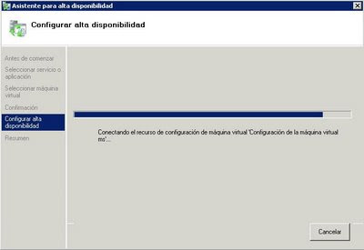Al tema. Os expongo aquí las capturas con los pasos a seguir a la hora de colocar una máquina virtual en un cluster de Windows Server 2008, no hace falta decir que para llegar aquí, no tenéis mas que echar mano de dos entradas en el blog de David Cervigón, donde tenéis toda la culturilla general y el paso a paso necesario previamente a los pasos que os voy a nombrar a continuación.