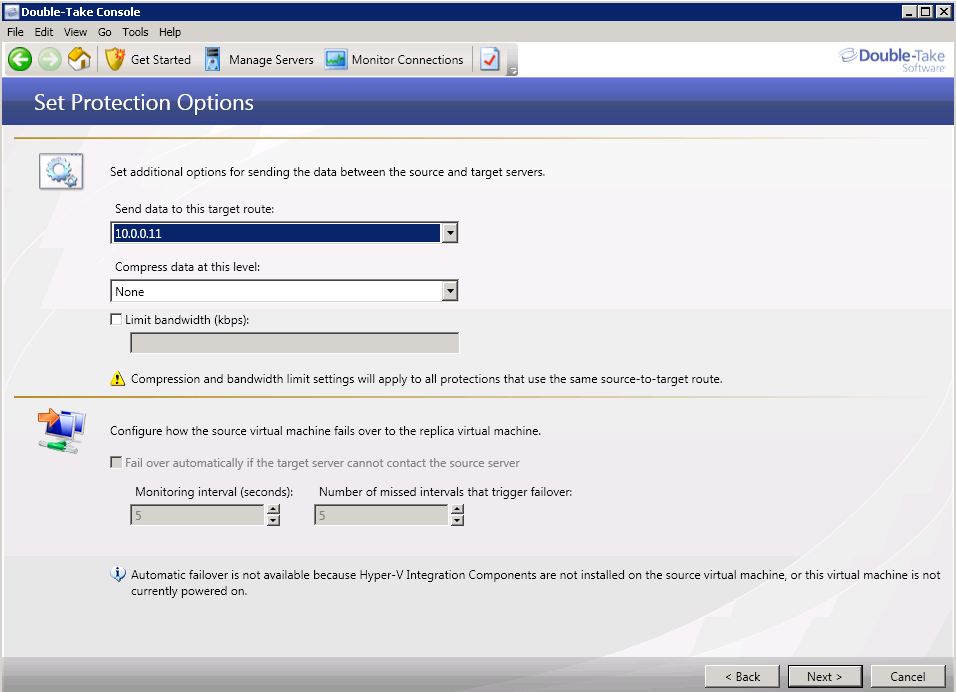Esto es lo que queréis que Double Take, llegue a ocupar en vuestro Host, para proveer del servicio de replicación, es importante este punto ya que cuanto más dediqueis a double Take, mejor irá la replicación, pero a su vez, menos memoria e io (si se comparte), os quedará para las máquinas virtuales: