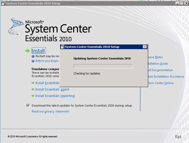 La instalación de SCE 2010 falla si seguís el típico, siguiente, siguiente, siguiente…, a base de prueba y error, descubrí que se evita desmarcando la casilla que en la captura dice «Download de latest updates to…», a partir de ese momento a funcionar. Eso me ha pasado tanto en una instalación en un entorno cerrado sin internet, como con internet sin restricciones, como en otro con un proxy, así que lo dicho, ojo al dato.