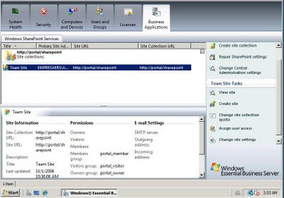 Y además nos integra sharepoint en la consola para que podamos administrarlo sin salir de allí, esto nos permite crear sitios, adminitrar sus librerias, administrar los permisos sobre los sitios, etc: