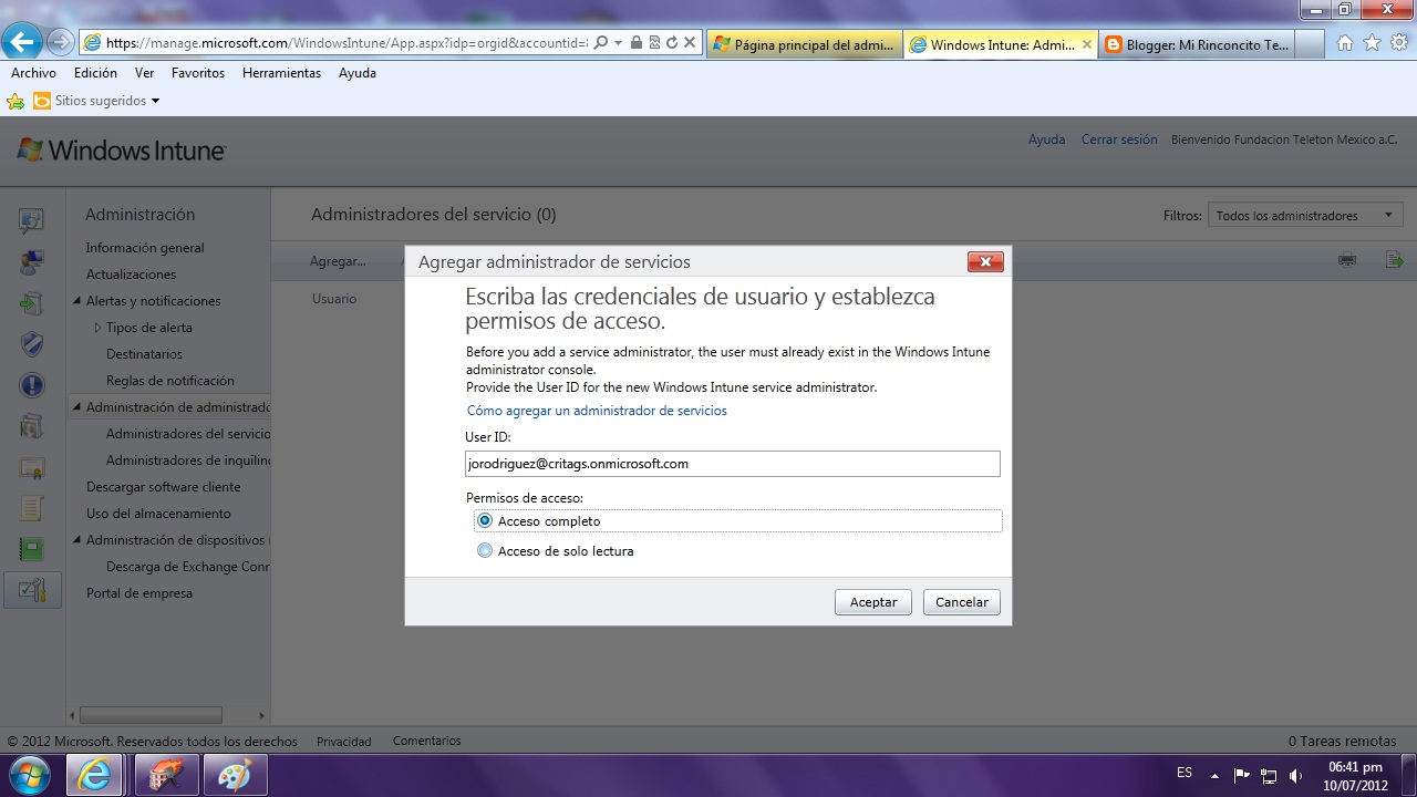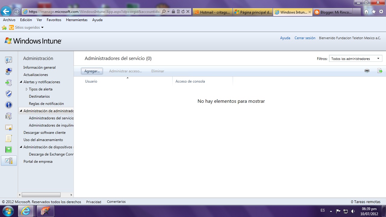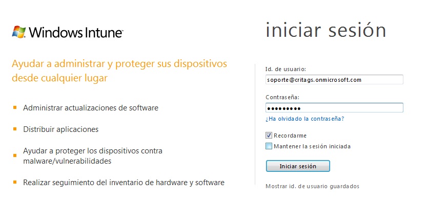para super administrador es soporte@critags.onmicrosoft.com Abra la consola de administrador de Windows Intune