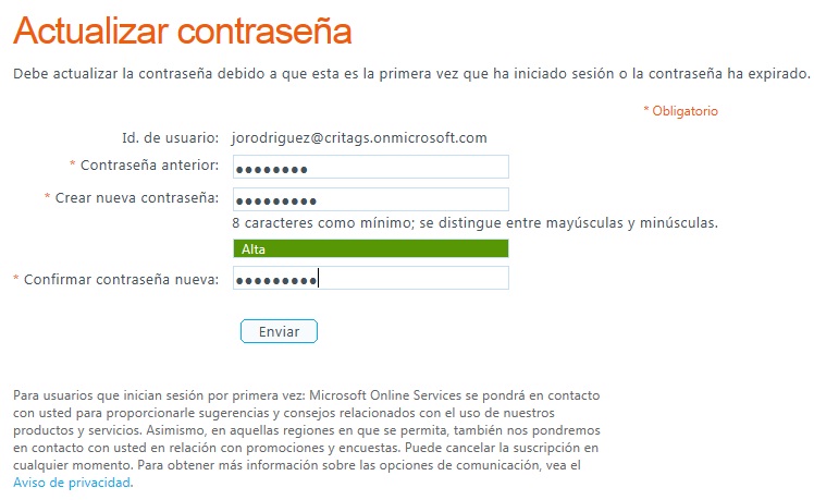 y cuando nos loggemos nos dara la opcion de cambiar la contraseña a otra mas personal.