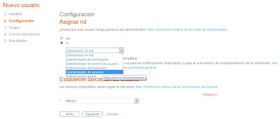 damos clic en siguiente, aqui es donde vamos a darle los roles principales para las tareas especificas de dicho usuario.