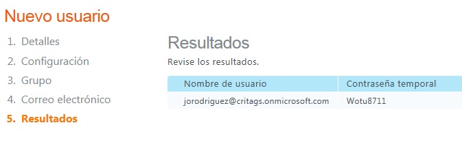 agregamos el usuario bajo el dominio que creamos critags.onmicrosoft.com y damos clic en siguiente