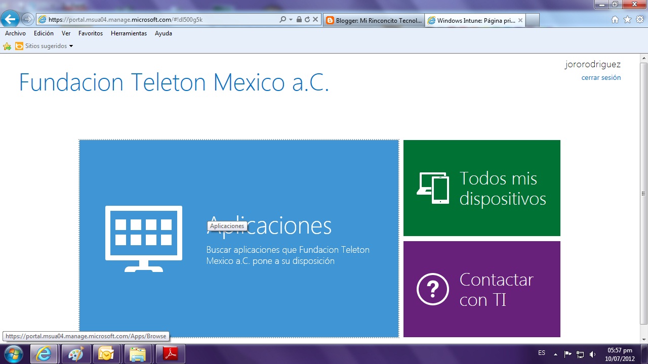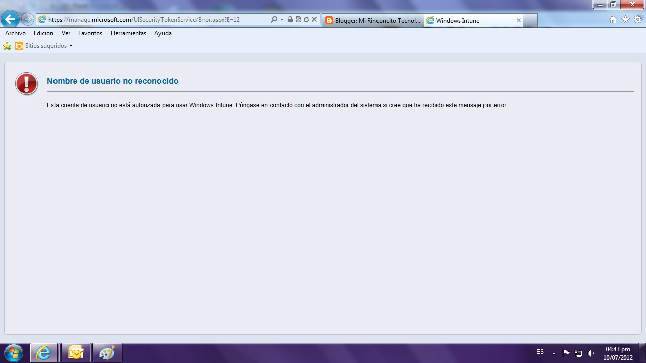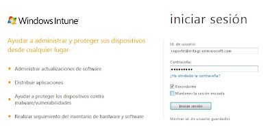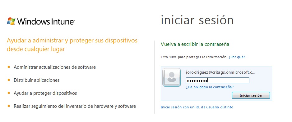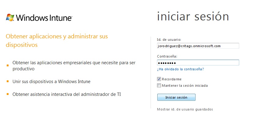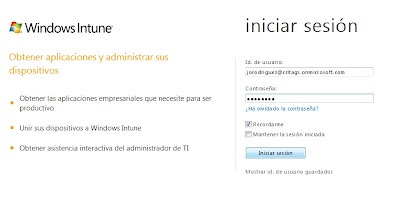 ahora vamos a darlo de alta, lo primero que haremos es entrar con la cuenta de administrador con la que dimos de alta windows intune ya que esta cuenta seria como super administrador asi como se muestra la siguiente pantalla.