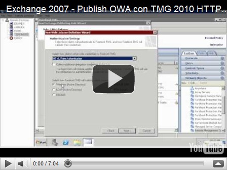 Les comparto un video donde realizo una regla en TMG 2010 para publicar Outlook Web Acess (OWA) Exchange 2007 via HTTP, como sabemos es una manera no seguro de publicar OWA y no es una buena practica de seguridad pero esto no restringue que las organizaciones o particulares puedan publicar sus servicios utilizando HTTP.