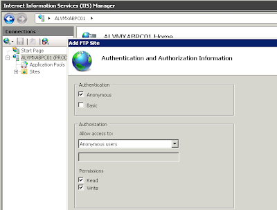 Desde esta página podremos configurar todos los detalles de nuestro Ftp como la Autentificación, podemos configurar la autentificación anónima o la básica, en este caso utilizaremos la anónima.