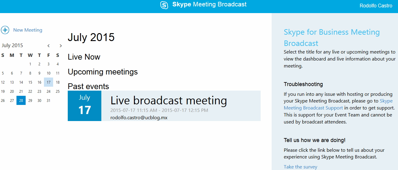 Microsoft ya tiene en preview una de las características que mas me han gustado de Skype for Business, Meeting Broadcast.